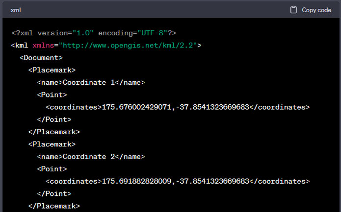 • Harnessing the power of AI to convert coordinates into KML files, simplifying the process and saving time.