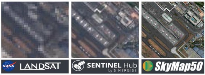 SkyMap50. At 50cm resolution, small features are identifiable, nearly to the human scale.