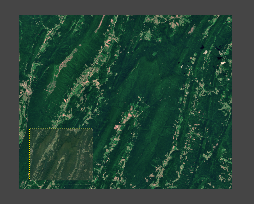 As you can see, if we compare our selected capture to the “Google Satellite” basemap behind it (using the transparency slider), we can see how the Sentinel imagery has a very blue wash to it. We can’t see as many details well from the unaltered imagery.