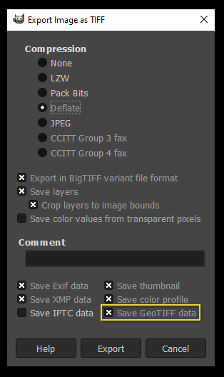 GIMP recently updated (GIMP 2.10.32) with the ability to edit and export “.tiff” files while keeping their GeoTIFF data. If you haven't heard of GIMP before, it’s a free image manipulation software - similar to things like photoshop.