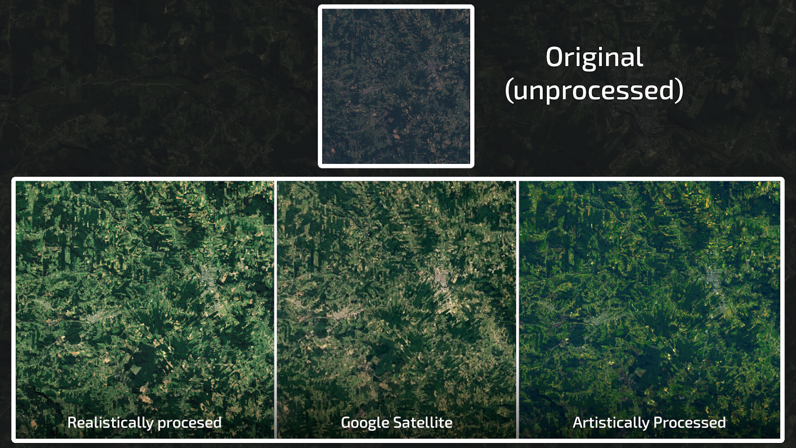 There are many different styles of processing you could apply to an image. If you’re going for something closer to ‘True Color’, you can use things like the google satellite base map as a reference when processing the colors. Maybe you want to play with the colors a little more and make it artistic. It's really up to you!