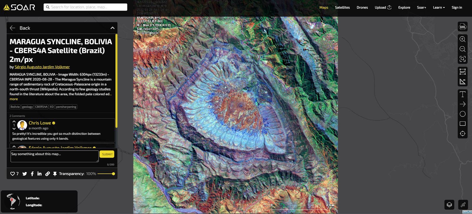 this map of Maragua Syncline by Soar user Sergio. The colours really stood out to me in 2D, so I was keen to see how it looked in 3D.