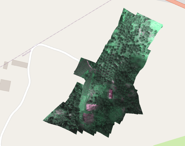 Orthomosaic drone image of Palm tree plantation field in the Federal University of Technology Akure | The area of the plantation cover about 62.89 hectares and 4095.99 in perimeter.| Processed on: Pix4dFields |