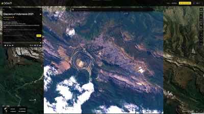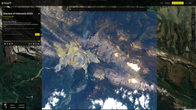 Snowline extent of Indonesian glaciers between 1800 and 1850 which probably covered at their width over 4km in width. View the map on Soar