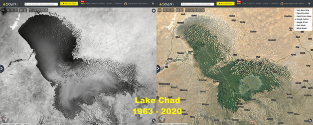 Lake Chad. Sometimes the desired event is on a smaller scale, like a landslide, explosion, or urbanization.