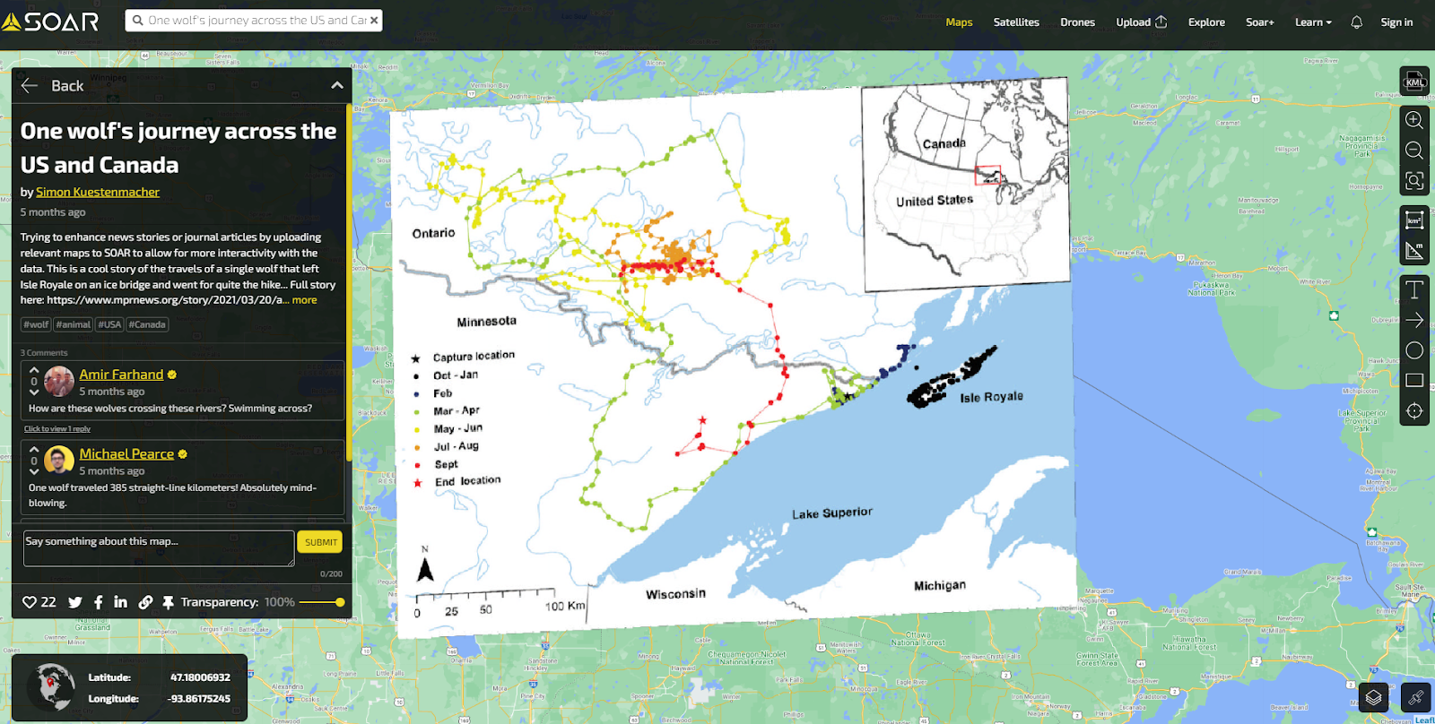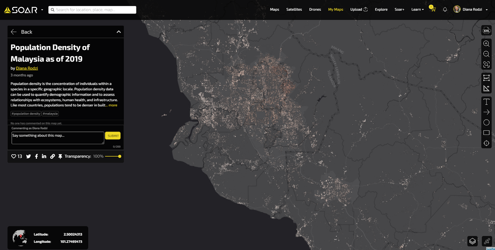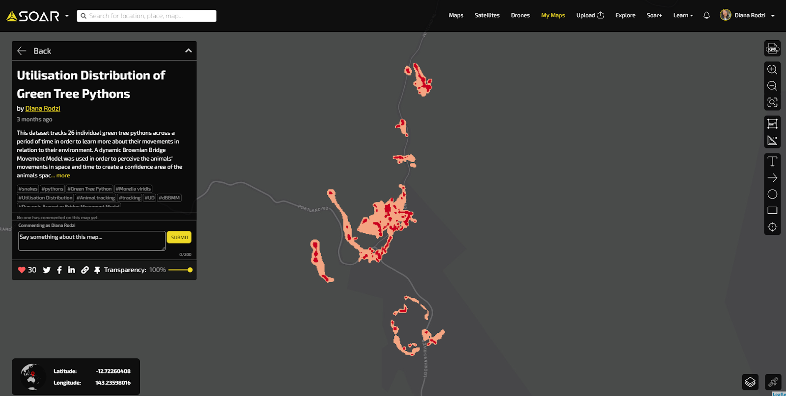 Soar is a great platform to share the amazing work that you’ve done in GIS. Many users on Soar upload their maps and imagery so it’s seen on top of a base layer, similar to how you’d see it in the analysis process in GIS software.